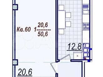 1-к. квартира 51 кв.м, 4/5