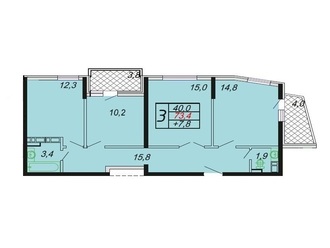 2-к. квартира 63.2 кв.м, 1/8