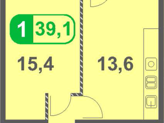 1-к. квартира 39.1 кв.м, 4/20