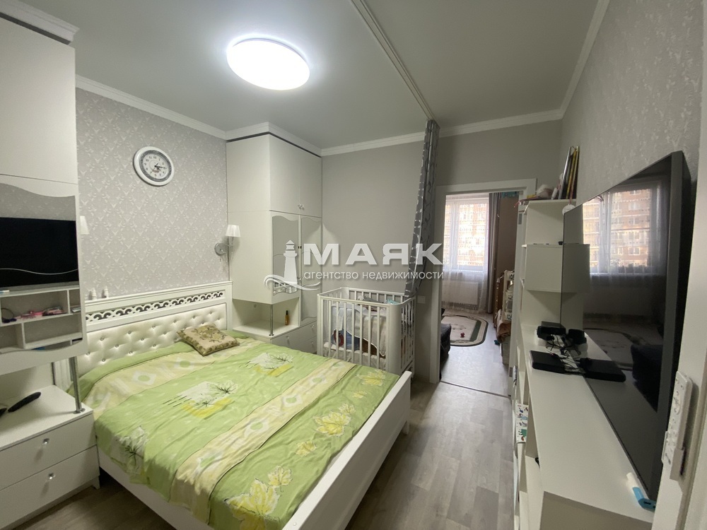 жилая площадь 22,1кв.м, также довольно просторная комфортная кухня-гостиная - 12,4кв.м. В квартире выполнен хороший ремонт.