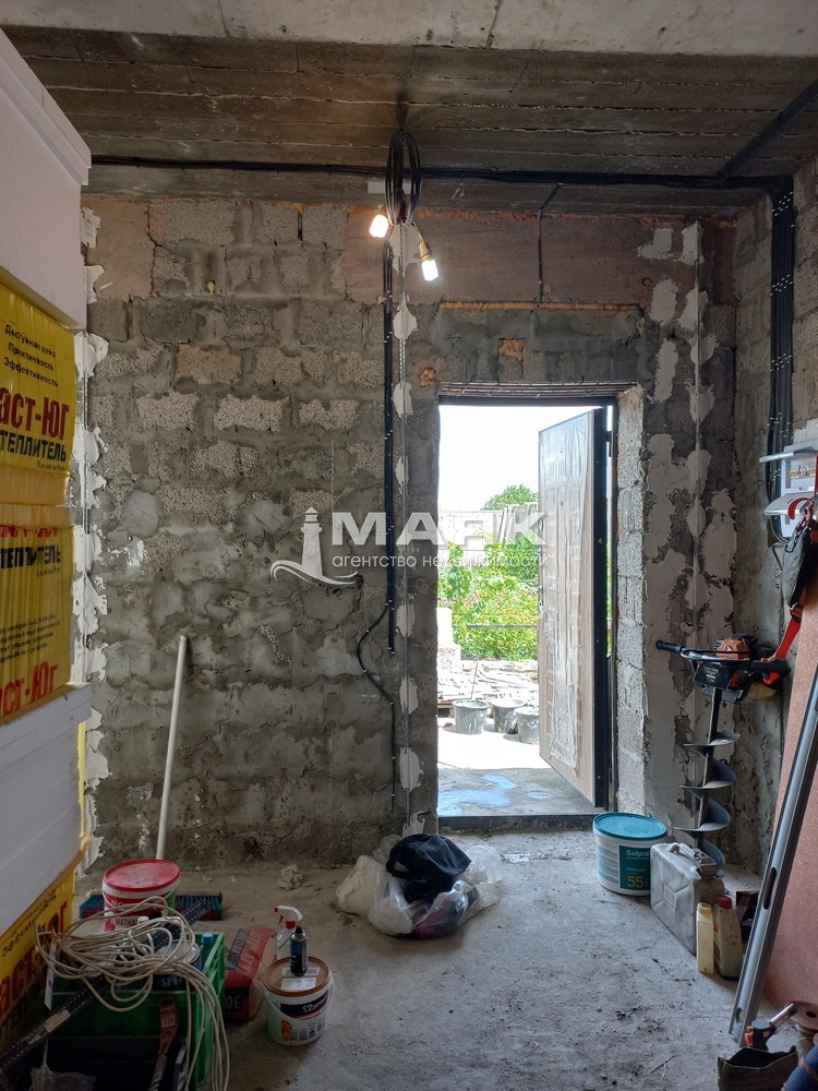 Предчистовая отделка, теплый пол, сделана разводка электрики. Дом в процессе отделки, утеплитель пенопласт и короед.