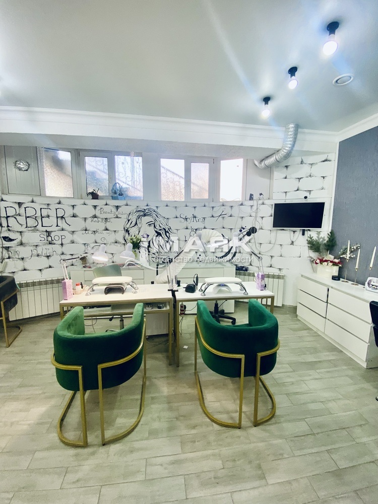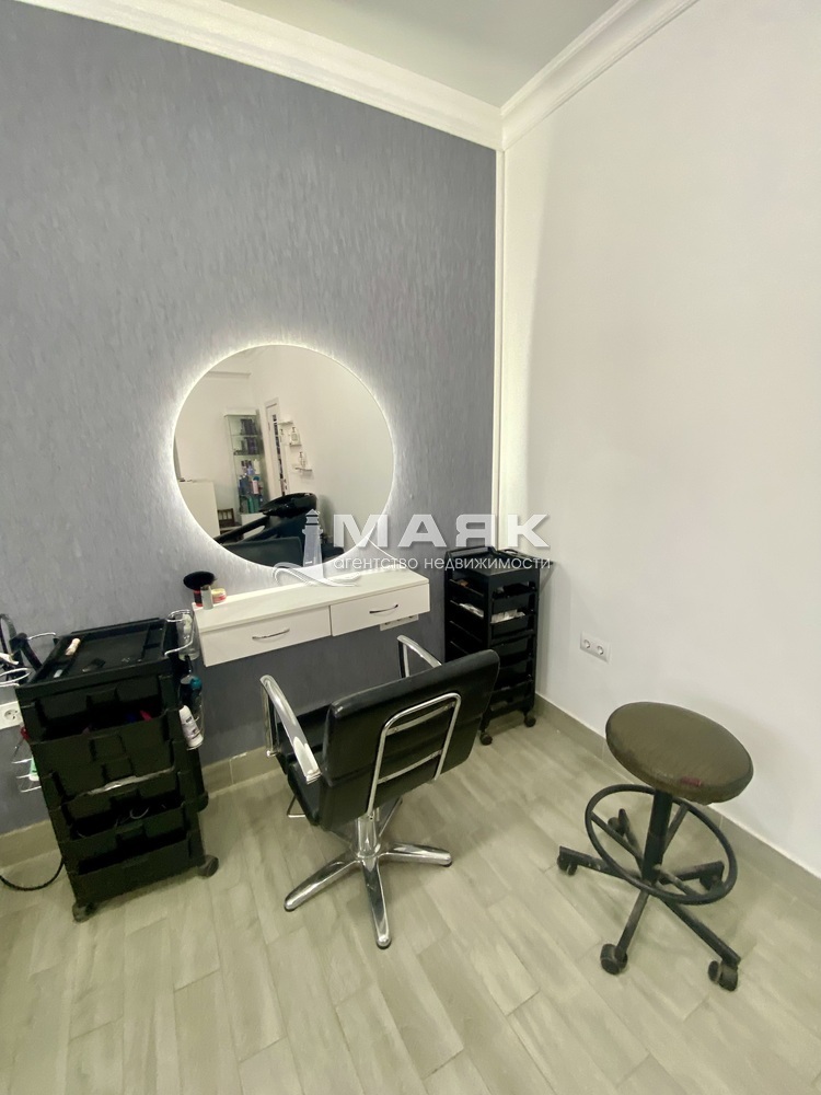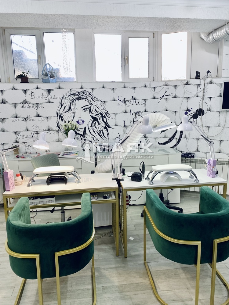 Новый свежий ремонт, все оборудование и техника останется. Отдельный кабинет под маникюр, плюс кушетка для косметолога. Так же имеется отдельное помещение с кухней и стиральной машинкой. Собственный сан узел с душем. В общем зале предусмотрет ресепшен с зоной для клиента, 2 рабочих места под парикмахера и 2 рабочих места под ногтевого мастера.