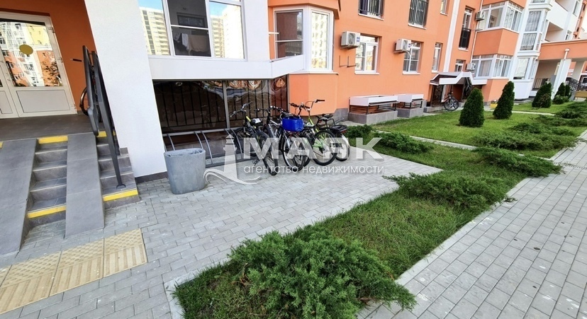 Территория двора обустроена детской/игровой площадкой, зоной отдыха, наземной парковкой авто, спортивный комплекс с бассейнами и тренажерным залом.