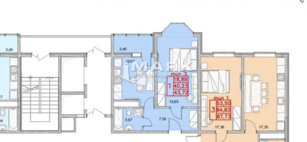 | Площадь (м2) | 43.97 / 18,3 / 11 |
