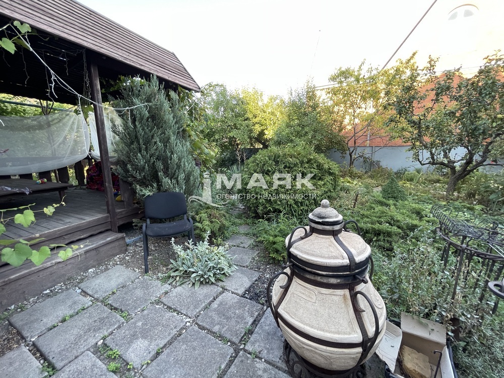 За домом красивая беседка, зона отдыха и барбекю.