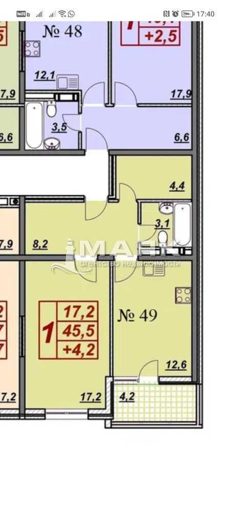 | Площадь (м2) | 45.4 / 17,2 / 12.1 |