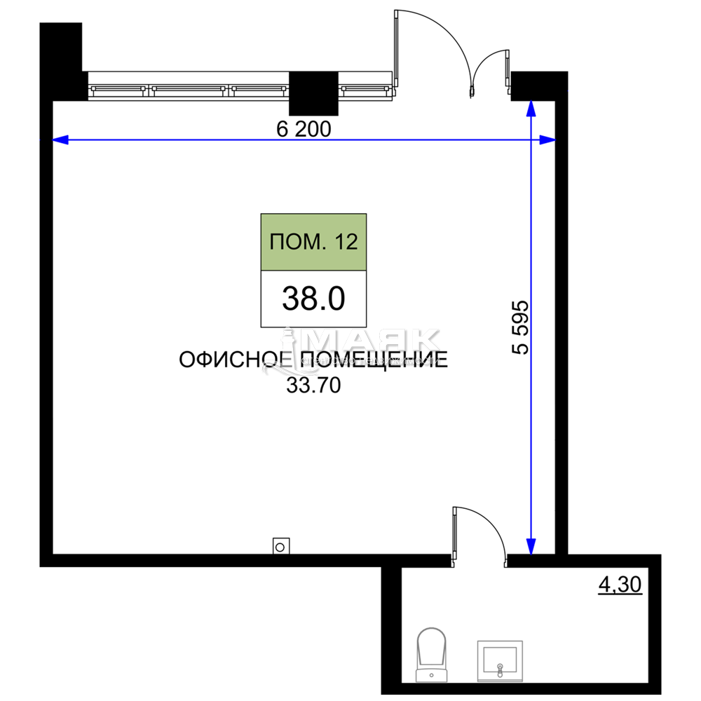 - Oбщая площaдь 38м2 м2