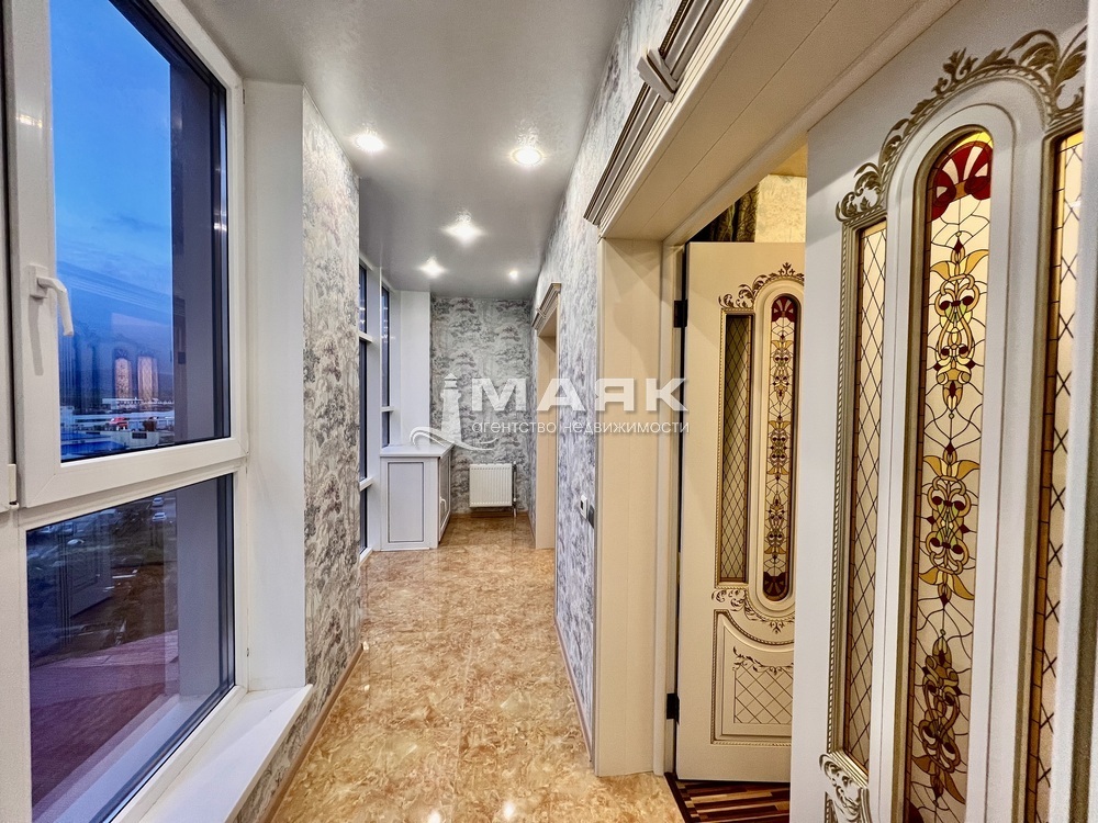 -Одним из самых привлекательных элементов этой квартиры является большая застекленная лоджия с витражным остеклением, где вы сможете наслаждаться атмосферой тепла и уюта.
