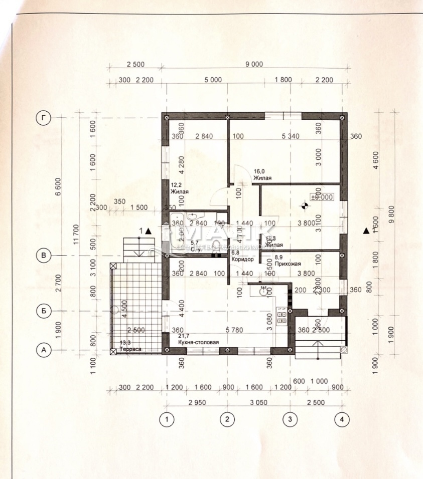 Планировка: прихожая, коридор, 3 спальни, санузел, просторная кухня-гостинная с выходом на террасу.