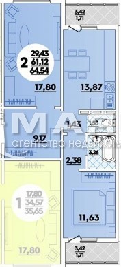 2-к. квартира 69 кв.м, 11/16