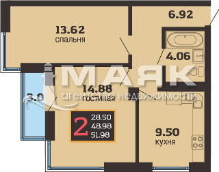 | Площадь (м2) | 53 / 29 / 10 |
