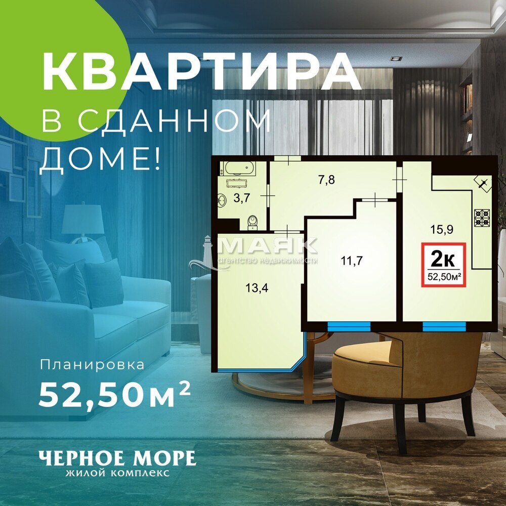 Предлагаем евро 2к квартиру в новом современном жилом комплексе "Чёрное море"!