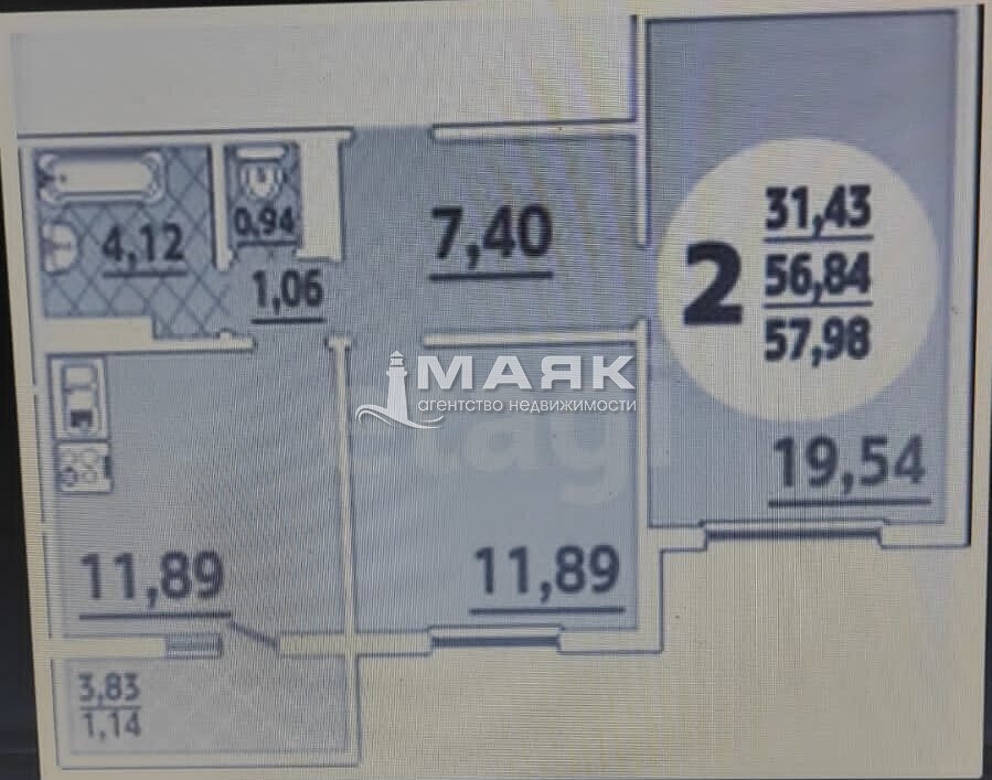 | Площадь (м2) | 58 / 31,43 / 12 |
