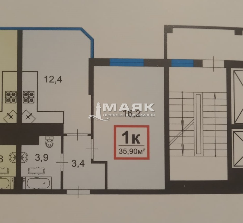 | Площадь (м2) | 35 / 16.2 / 12.4 |