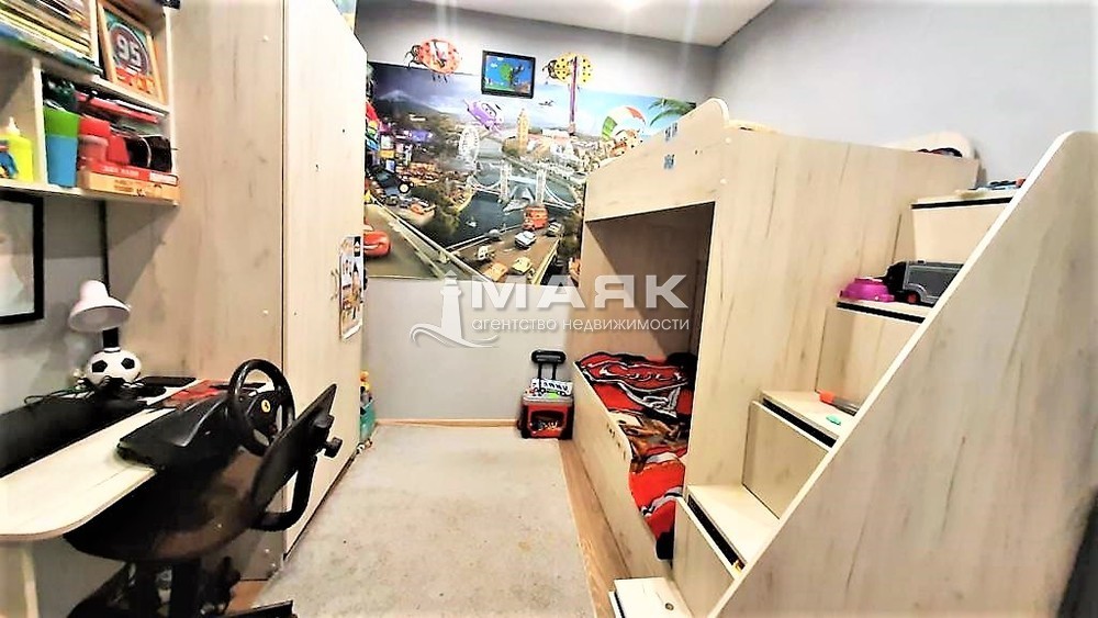 Большая комната зонированна на две: детскую и спальню, плюс кухня гостиная.