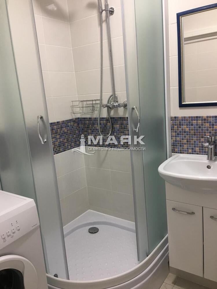 Выполнен ремонт в санузле, кафель, новая душевая кабина.