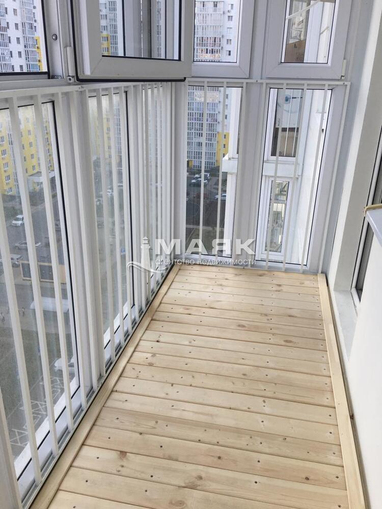 Балкон просторный с панорамным остеклением.