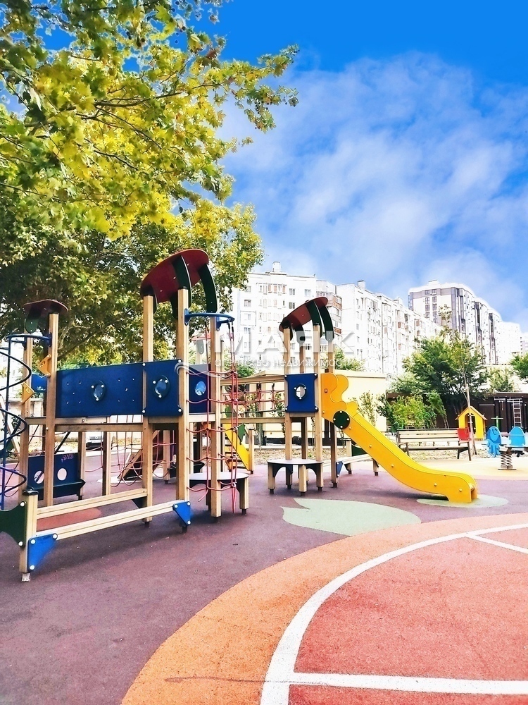 Благоустроена придворовая территория: детская и спортивная площадки, подземный паркинг, зона для отдыха.
