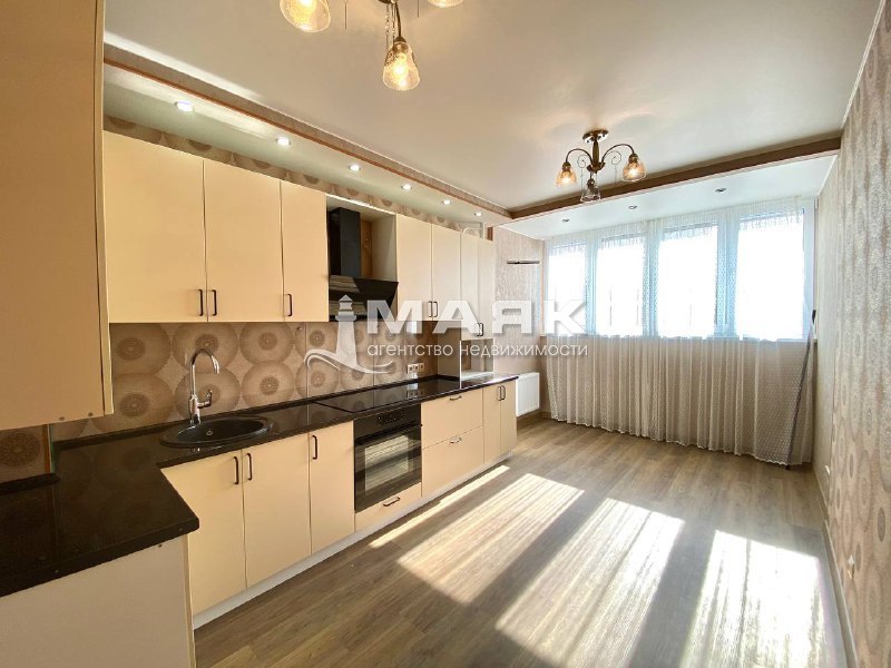 В квартире выполнен качественный дизайнерский ремонт в теплых тонах: на полу по всей квартире выполнена кварцевая плитка с без пороговой системой, установлены дорогие двери из натурального дерева.