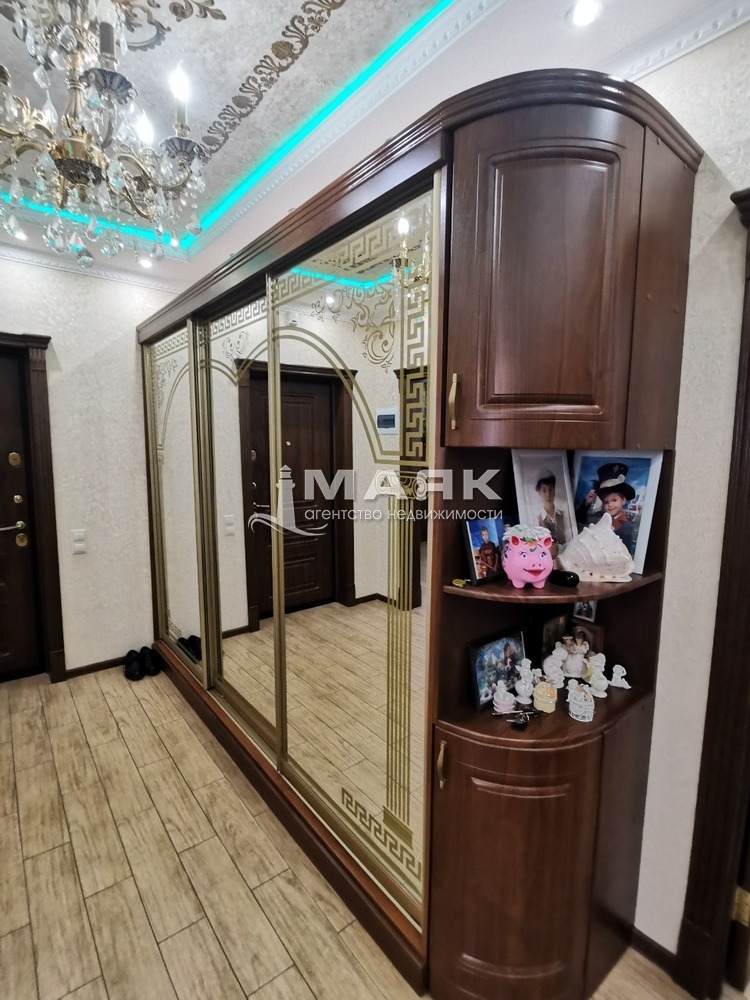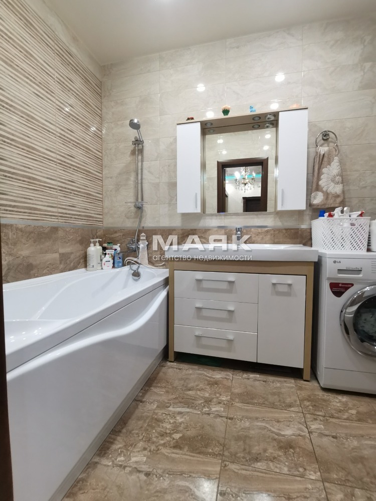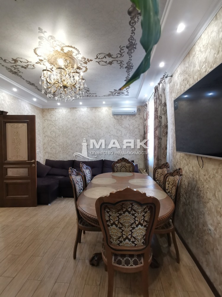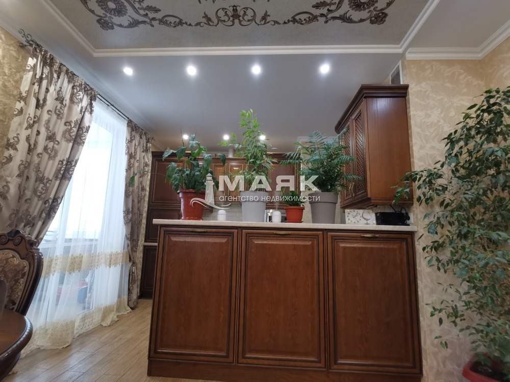 Ремонт сделан по индивидуальному дизайн проекту и строгому подбору качественных строительных материалов. Уровненные потолки со светодиодной подсветкой и зонами света точечно и люстры . Индивидуальное газовое отопление , тёплый пол на 5 контуров .