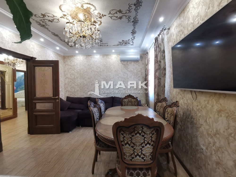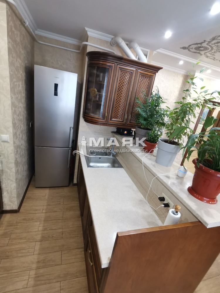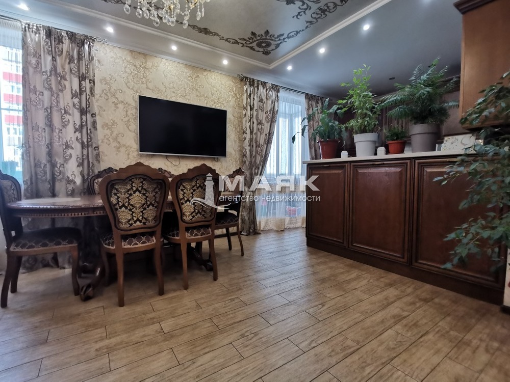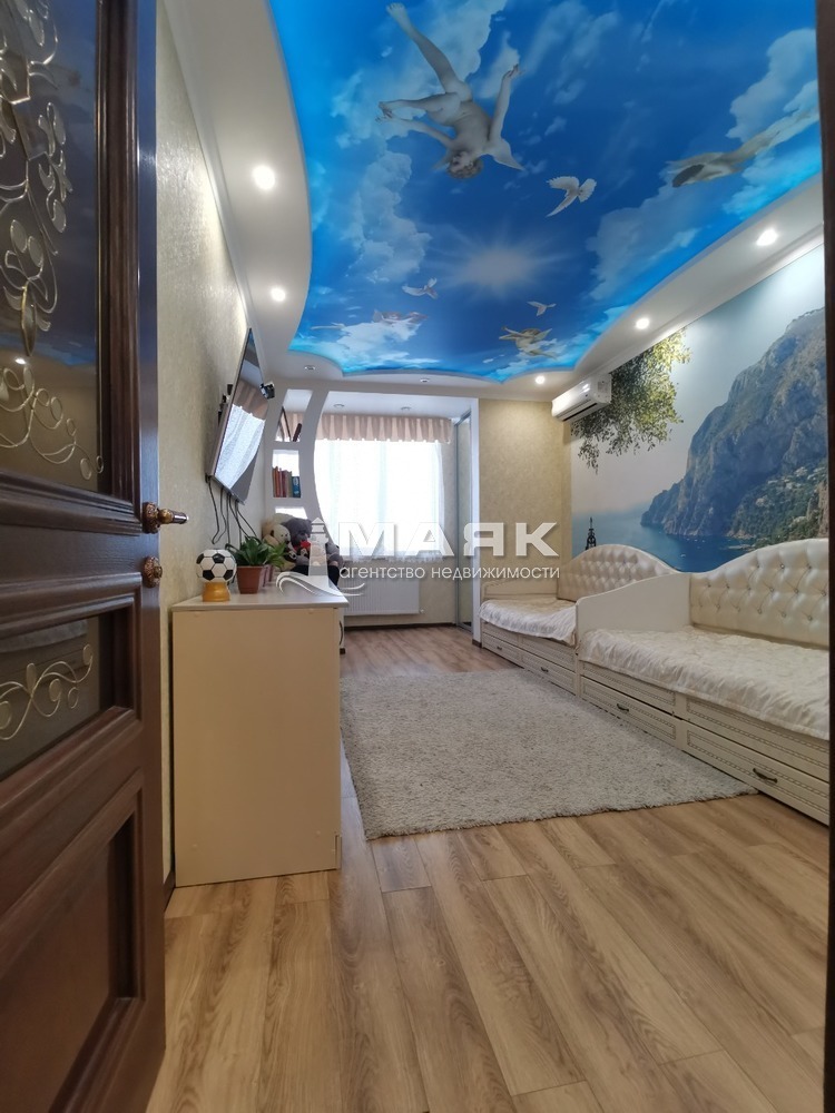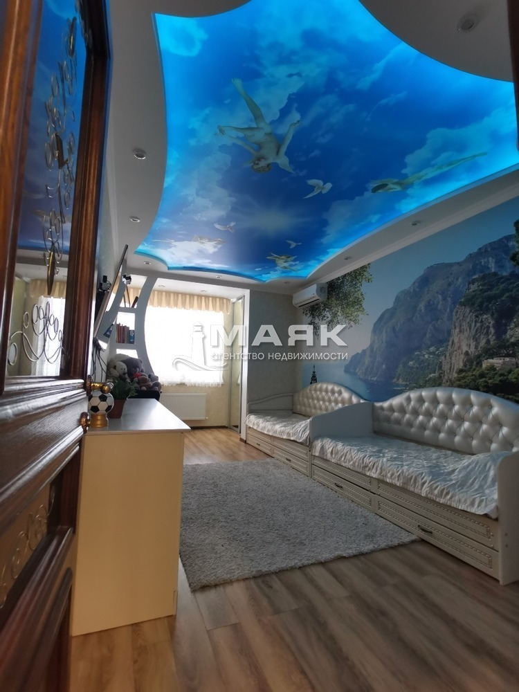 Ремонт сделан по индивидуальному дизайн проекту и строгому подбору качественных строительных материалов. Уровненные потолки со светодиодной подсветкой и зонами света точечно и люстры . Индивидуальное газовое отопление , тёплый пол на 5 контуров .