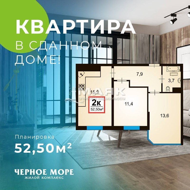 Продается уютная 2 комнатная квартира площадью 53квм с хорошим ремонтом на 13/15 этаже монолитно-кирпичного дома в ЖК Черное море Анапа, ул. Анапское шоссе.