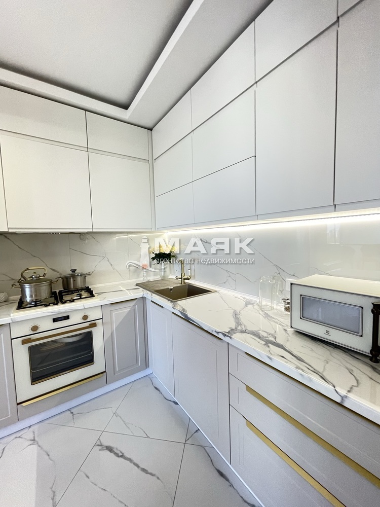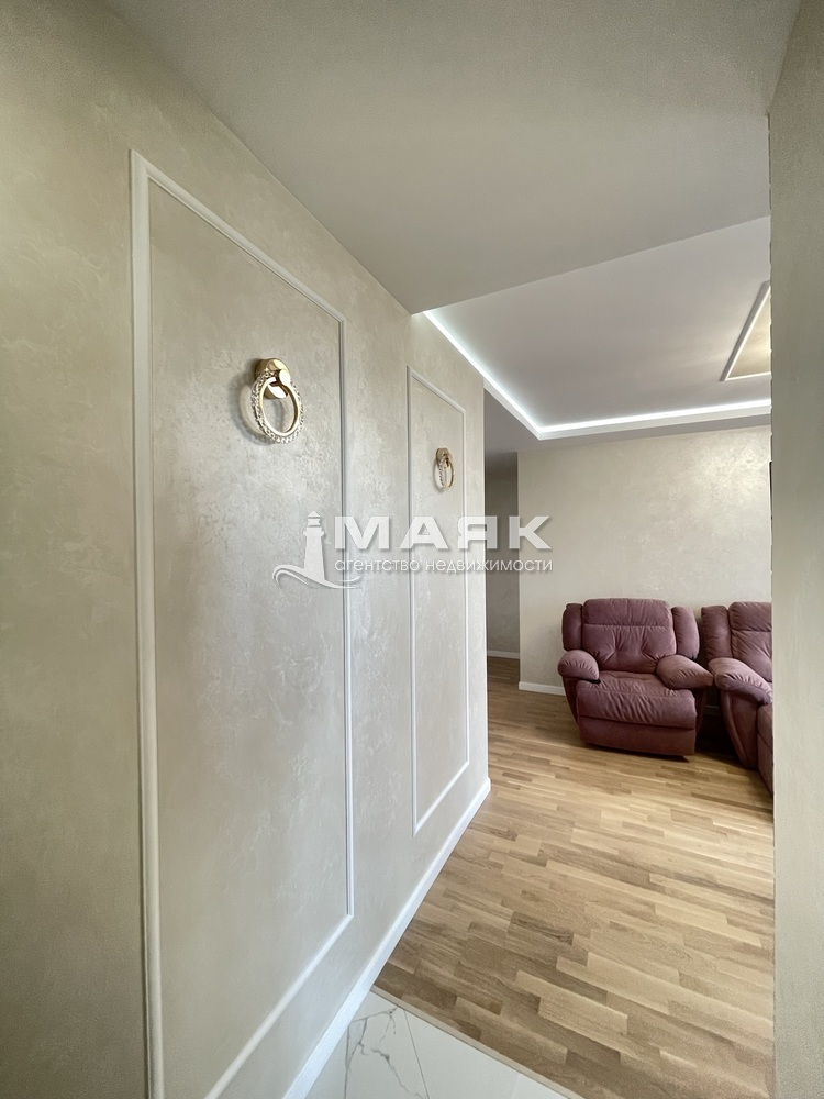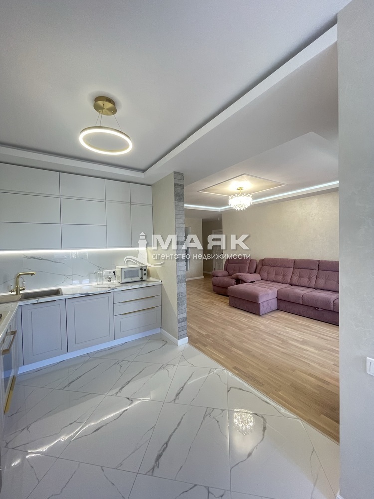 Площадь 100 кв.м, на 9 этаже 10 этажного дома. В квартире полностью выполнен ремонт по дизайн проекту. Использовались только натуральные материалы: