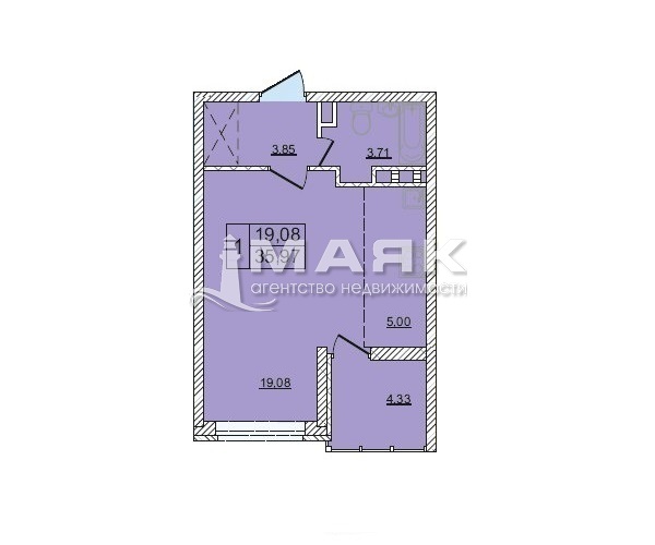 | Площадь (м2) | 35.97 / 19.08 / 5 |
