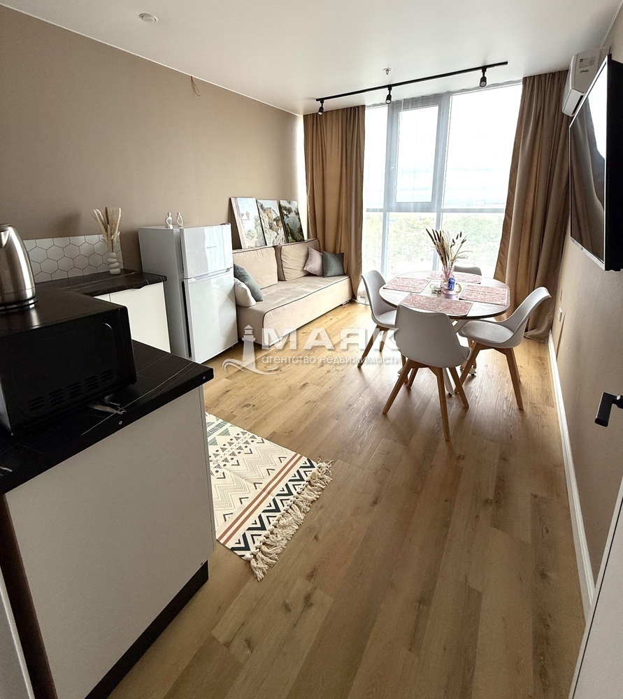 2. В квартире сделан красивый ремонт с использованием новых материалов. Внутри есть вся мебель, посуда и техника, поэтому вам не нужно ничего покупать. Вы сразу сможете жить в комфорте.