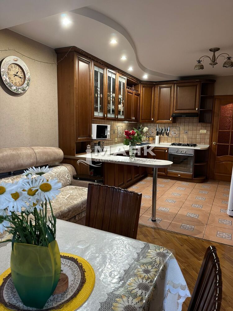 Продается уютная 3х комнатная квартира общей площадью 124,6 кв м. в доме с улучшеной планировкой в спальном районе. Квартира находиться на 3 этаже, лифт грузо-пассажирский. Высота потолков 2.70. Установлены счетчики - вода горячая/холодная. В квартире два сан.узла. Отопление центральное - стоит теплосчетчик. Кухня шпон натурального дуба.