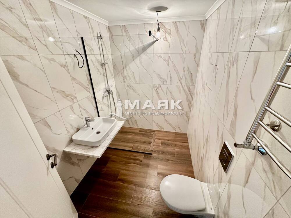 В сан.узлах установлена сантехника. Столешница из искусственного камня, накладная раковина и итальянские смесители. Смонтированы душевые и ванные.